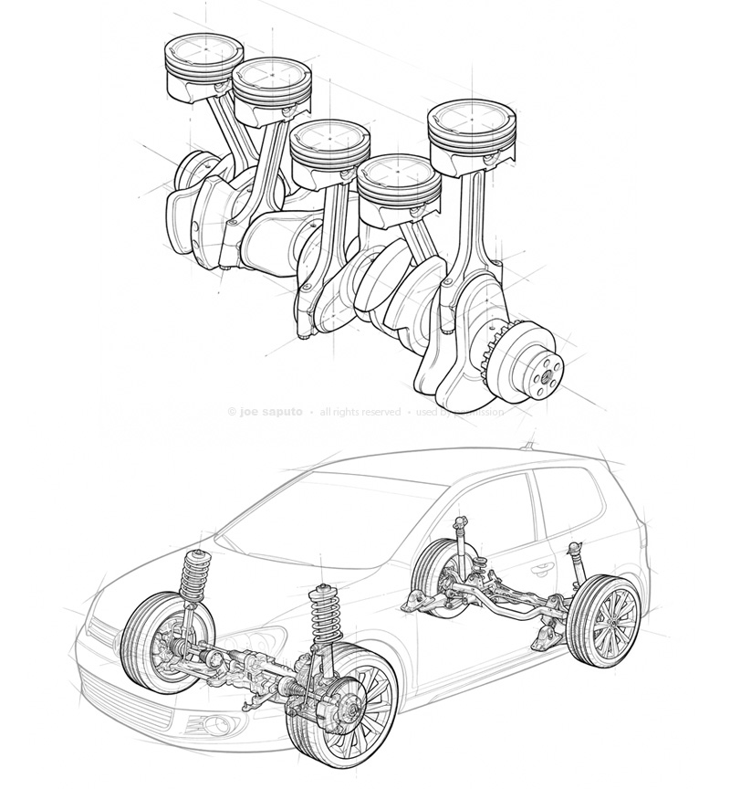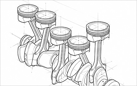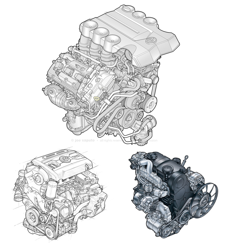 Commercial technical illustration. Vector, traditional pencil